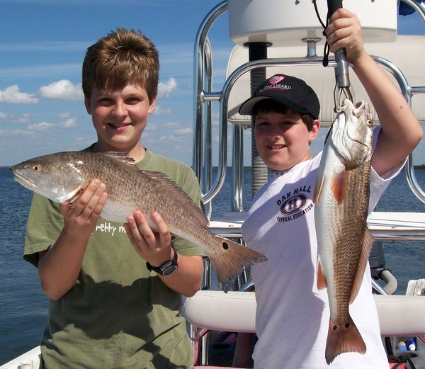 Now as fun and exciting as river fishing can be, discharge areas of Power Plants can be even better. The Citrus County area also has a local Power Plant that also discharges millions of gallons of warm water every day. Most discharge areas are loaded with long oyster bars and huge boulders all of which can hold redfish during particular times of the year. However, there is nothing more exciting than sight casting to huge schools of redfish pushing down a long mangrove laden shoreline. On a recent charter I put Trey Carr and Michael Potapow on a nice school of Reds on crystal clear sandy shoreline just outside the outflow of the Power Plant. As the school approached we tossed live select shrimp at them provided by the world famous Ed’s Bait and Tackle. If you could only see the looks on these 10 and 11 year olds as they reeled in their monsters, it was priceless. To make this even better these two boys out fished their dads that day, giving them a little bit of “bragging rights” for the next fishing trip.