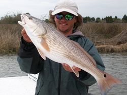 On recent charters I have worked particular areas were warmer water can be found. On the first trip I decided to work a local spring fed river that pumps out millions of gallons of 72 degree water every day. With water temps consistently remaining the same in one are for a long period of time the idea is not to just fish were the fish will be, but fish during their feeding times. Fishing this are for the last 10 years I have learned the most Redfish really get fired up as the tide goes slack near these springs. When the tide goes slack the ticket is to sight cast Redfish while laying on the bottom in crystal clear water from 5 feet