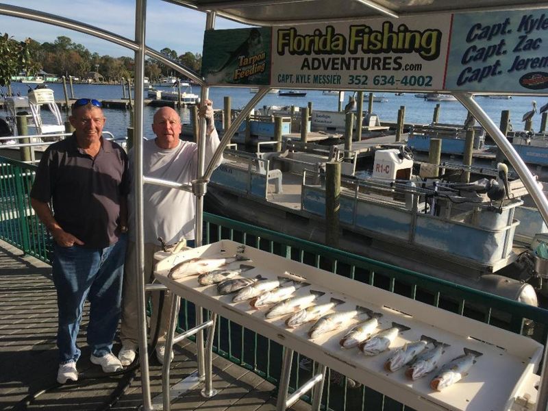 First day with the new boat was a success. Larry and Dave showing off a nice carch of Redfish, Trout, Sheepshead and a Black Drum.