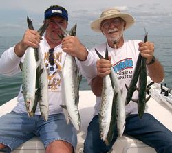 My clients and I have been throwing Rapala SkitterWalks and Berkley Gulp! Jerkbaits to entice most of Trout, but the old faithful Berkley Gulp! Shrimp has also picked many of the fish that the bigger baits have left behind. With our local flats so crystal clear the New Penny and Lime Tiger colors have worked the best on my boat. After we have exhausted all avenues with the Speckled trout, the Spanish Mackerel fishing has been one for the record books. 30-50 hook-ups a day are uncommon and a cooler full for the smoker is almost a no brainer. These speedy Macks love any bait that moves fast. For a rod bending thrill I have been having my clients throw a crippled herring jigging spoon with a #1 hook (barbs pinched). When the mackerel are at their best it’s nothing to have a strike every cast. I debarb these hooks because you can only keep so many and the strike and first drag screaming run is the best part of this fishing. With most of these fish running between 2-6 pounds this is a ton of fun on light tackle and on fly.