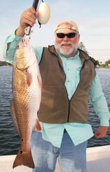 Checkout Art Dawe with this slob 34" Redfish that gobbled up a select live shrimp from the "World Famous" Pete's Pier Marina.