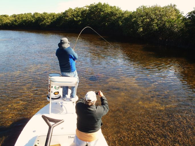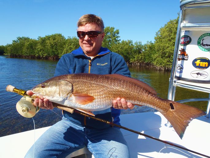 The staple of Nature Coast fishing during the coming months will continue to be the excellent skinny water Redfishing found along the shallow flats stretching from Crystal River to Homosassa. The Ozello Keys is the middle ground between these beautiful pieces of real estate and with vast areas of shallow crystal clear flats teaming with tailing Redfish this is the best time of year for targeting these hard fighting fish in the shallowest of waters. Typically most of our shallow water fishing is done by sight fishing to individual fish with both spin and fly gear. The subtle presentation of a free lined shrimp is a reliable way to put a bend in a rod but for anglers that love a challenge throwing flies to unsuspecting fish will yield some impressive results. Just ask Peter Just who landed his personal best 37” Redfish while fly fishing with Florida Fishing Adventures.