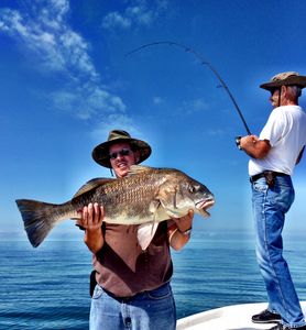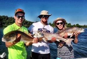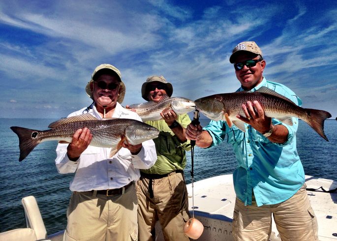 They great part about this time of year is that many of the larger schools of schooling fish including the Redfish and Black Drum have now scattered about the flats. Normally during the summer months most anglers look for that one major whopper school of fish. This time of year there tend to be fish literally everywhere and the more real estate that anglers fish over the coming weeks the better opportunities anglers will have at catching some incredible numbers of fish. As of late it has not been uncommon for some of my anglers to experience some 40-80 fish days. Although there are still a ton of little rat Redfish and Black Drum running around we still have had a few banner days where it every fish you land is one of the monster outside of the slot fish. Just ask Jim Ferman, Bill Small and Steve Straske who made the trip up from Tampa and were rewarded with incredible weather and an epic day of oversized Redfishing.