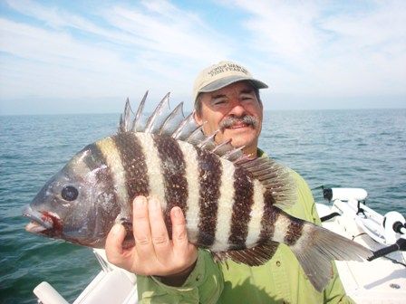 Massive amounts of bait including shrimp, crabs, and number of baitfish have all returned to our local flats and not following far behind are migrating Sheepshead, Black Drum, Redfish, Spanish Mackerel, and even a few Tripletail. The Sheepshead fishing at the moment is in PrimeTime. Considering that most Sheepshead have already spawned, the ones that have inundated many of the local structures including rock, wrecks, reefs, markers, and oyster bars are feeding like crazy to try and build up body mass they may have lost while spawning offshore. All it takes is a hand full of chum (shrimp or crabs) to start a feeding frenzy and when the action starts it can be fast and furious. Sheepshead ranging from 2-5lbs is the norm but there have been some Bruisers taken over 6lbs. Sheepshead fishing is a blast on light tackle and with our local waters being so clear, sight fishing to these striped swimmers is an everyday occurrence.