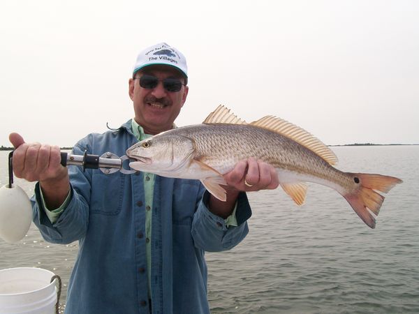 Ron Diprima is pictured here with a nice 25" Redfish that fell for a live shrimp from Ed's Bait and Tackle.