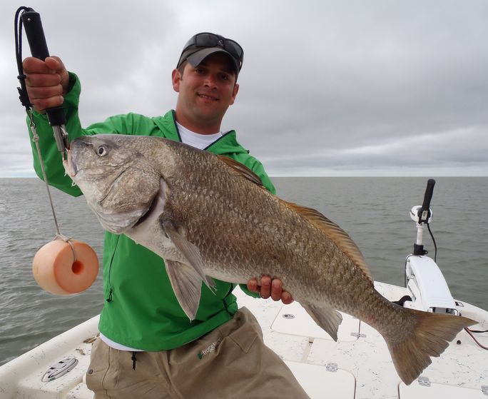Tommy is proudly showing off this nice 20lb+ Black Drum he caught while fishing the Crystal River area with Florida Fishing Adventures.