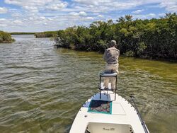 When my anglers have not been obsessed with targeting Permit, they have found some incredible success catching Snook and Redfish in the upper to over slot range. On the Gulf side of Florida Redfish have an 18â€-27†inch slot while the Snook slot remains a tight 28â€-33†inches. With water temperatures starting to heat up along the flats it has been increasingly important to target outer islands, points, and oyster bars where harder currents tend to flow. Where you find stronger currents often you will find cooler water temperatures and consistent flows of bait. Floating live baits such as shrimp and pinfish down current towards feeding fish has lead to some incredible catches lately but for those anglers throwing lures or flies casting up current and retrieving lures and flies towards fish is the more natural approach.