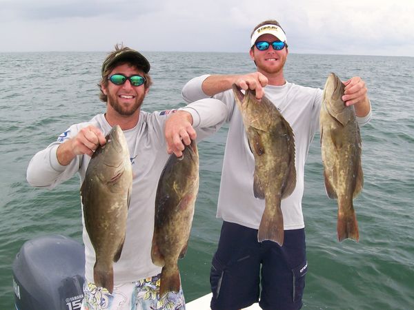 Kale Trenary and Brian Mason had thier hands full with this limit of Gag Grouper. All of these fish were caught in 5ft of water and most were sight casted. Great Job Guys!!!