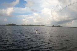 Once fish have been located its important to act fast. Because the only visual that anglers have is the fish actually rolling its important to put the fly in the general vicinity of the Tarpons’ travel pattern ASAP. My preferred fly selection includes small Tarpon Toads, Black Clouser Minnows and my particular favorite a white and silver Murdich Minnow (hand tied by Russ Kucinski). Fly lines such as Rio’s Flats Pro with its stealth tip are ideal. These lines come with either a 5’ or 15’ foot clear sinking tip that will put a fly in the strike zone fast.