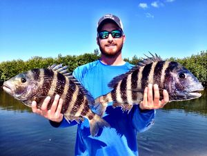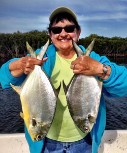 Shelia is proudly showing off this nice pair of Crystal River Pompano that made their way to lunch today!