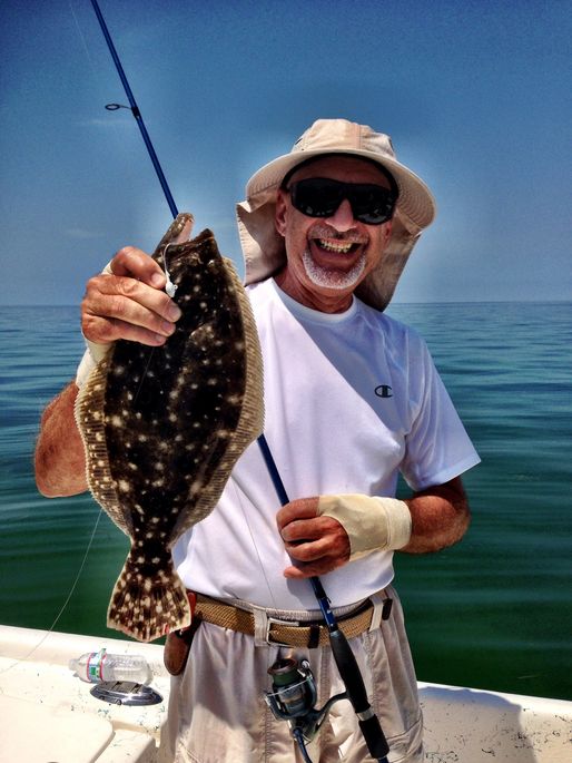The top species this month will continue to be the Redfish, Black Drum, Mangrove Snapper and Gag Grouper but for anglers looking for a little bit more of a tasty challenge try Flounder Fishing this month. Our local Flounders are called Summer Flounders for a reason and with their peak seasons featured in July through September now is a great time to take the challenge. I call flounder fishing a challenge only due to the fact that it is not necessarily fast and furious action with a major strike. Flounder are very subtle feeders very rarely giving up there hiding spots to chase down a bait. It’s their camouflage and element of surprise that makes this fish so challenging. Targeting sandy areas with patchy bottom will provide most anglers with success. Jigging a shrimp or slowly crawling your bait on the bottom will certainly get the attention of any weary Flounder looking for an easy meal. The key to Flounder fishing is once you have located one chances are their will be more in close proximity.