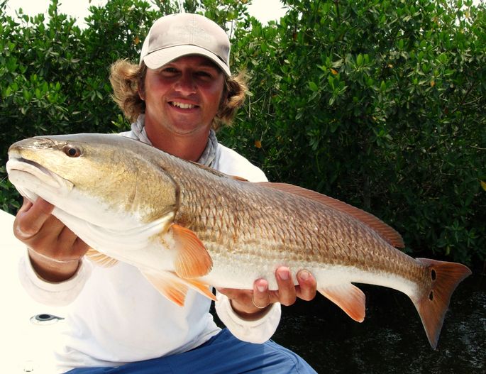 With the Redfish action along the Nature Coast as hot as the weather my clients and I have opted for a sunrise surprise method of attack when chasing shallow running Reds. With the water temps hovering around the mid 80’s and huge pods of mullet running up and down many of the creeks, cuts, and coves where these Reds love to call home, using plugs and cut ladyfish and mullet have provided the best success for most of my anglers. The trick when targeting early morning shallow Reds is to be patient. Most cut baits put out a ton of scent, so the trick is to let the bait do the work.