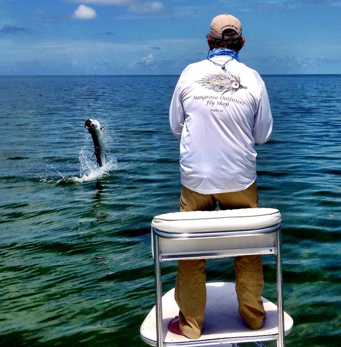 When choosing flies and fly lines to do battle with a Tarpon its important to consider the depth an angler will be targeting as well as the bottom color your fishing. Normally our local flats tend to be shallow and clear with depths averaging around 4-6ft of water. With water depths so shallow a weight forward floating fly line is a great all around line to use. Scientific Anglers Mastery Series and Rio Tarpon fly lines are choice lines that most of my fly anglers prefer. When choosing Tarpon fly’s think small. Tarpon flies are normally tied on a 1/0 hook and tied with materials that create a dark silhouette and become lifelike when wet. Flies tied in all black and black and purple with marabou, craft fur, bunny, or a couple of splayed hackles will bring a wet fly to life when stripped. Variations of Toads, Megalopsicles, EP Baitfish flies, and smaller Black Death Patterns are very successful patterns that move just enough in the water to entice the keen eye sight of a hungry Tarpon.