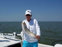 Most of our days have been spent catching a variety of different species of fish. We have been mainly targeting redfish and trout, but for the past month or so while we have been trout fishing another species of fish always interupts our day. For the past month we have been catching plenty of bluefish, mackeral, cobia, and shark while we have been trout fishing. As recently as the 1st of June, we also have been sighting allot of tarpon in crystal clear water from 5 to 7 feet. These fish are a definet challenge and a welcome guest at the end of any trout rod.