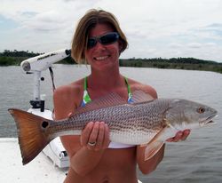 For instance on a few of my recent charters we have been stalking large Redfish using only TopWater lures. Now, when someone hears that a Redfish has been caught on a Topwater they usually don’t think much about it. But if you take a second and think about feeding patterns of Redfish you would understand that they are primarily scavengers or bottom feeders. To get a Redfish to hit a Topwater is a challenge in its self mainly because you take a predatory fish whose primary mission when searching for food is to find easy things to eat on the bottom and you turn him into a leaping and hard charging feeding machine when a Topwater approaches his territory. For those of you who have never experienced a Redfish explode on a Topwater it can only be compared to a Bass inhalation on steroids. The explosion of the bite is so furious that many of my clients fish for the strikes and not the actual fish.