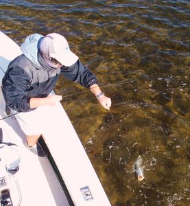 If you like a mixed bag of species the Nature Coast of Florida is offering anglers a bounty of opportunities. The crystal clear waters that we’re fishing at the moment are teaming with life making for perfect sight fishing and fly fishing opportunities. During a recent fly fishing charter myself and Dave Ruddock (visiting from Cape Cod, MA) enjoyed fantastic weather and great fishing for a variety of species. Dave’s goal while fishing Florida was to knock off as many different species on fly as he could with in 2 days of fishing. Over our 2 day stretch Dave hooked and landed over a dozen species including Redfish, Speckled Trout, Grouper, Spanish Mackerel, Bluefish, Pompano, Sheepshead, and Snapper. This catch would have been fantastic to accomplish in the Spring or Fall but that fact that he was able to pull this off in January shows how unseasonably Fantastic our weather and fishing has been.